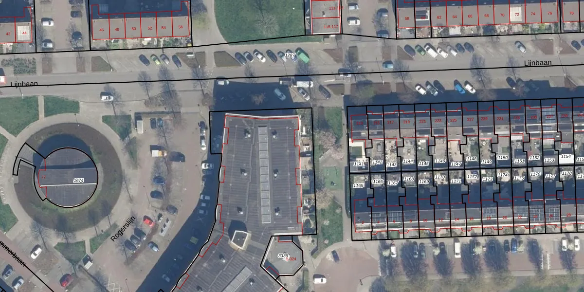 Het perceel waarop Rogerslijn 20 staat heeft een oppervlakte van 3020 m². Dit is een zeer groot perceel. De perceeloppervlakte wordt geregistreerd door het Kadaster. Gedetailleerde informatie over de maten van dit perceel kunt u vinden in het rapport Kadastrale kaart met maatvoering van Rogerslijn 20.