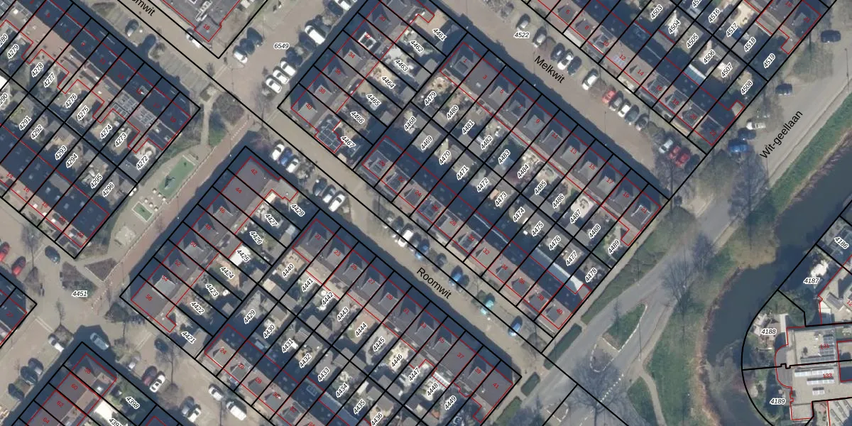 Het perceel waarop Roomwit 26 staat heeft een oppervlakte van 114 m². Dit is een middelgroot perceel. De perceeloppervlakte wordt geregistreerd door het Kadaster. Gedetailleerde informatie over de maten van dit perceel kunt u vinden in het rapport Kadastrale kaart met maatvoering van Roomwit 26.