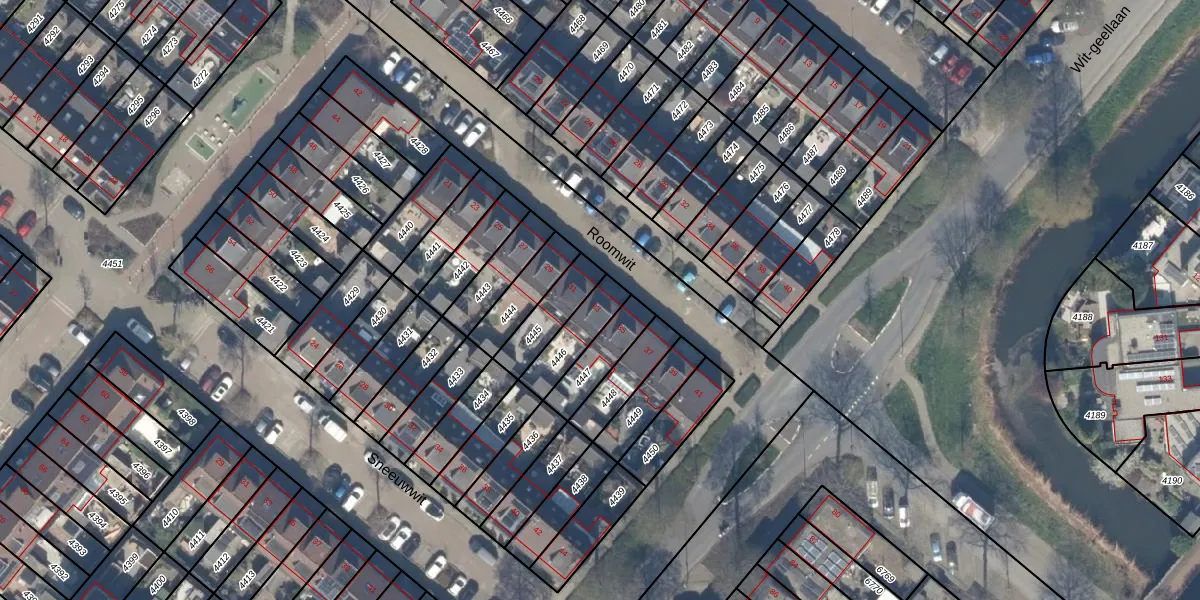 Het perceel waarop Roomwit 33 staat heeft een oppervlakte van 124 m². Dit is een middelgroot perceel. De perceeloppervlakte wordt geregistreerd door het Kadaster. Gedetailleerde informatie over de maten van dit perceel kunt u vinden in het rapport Kadastrale kaart met maatvoering van Roomwit 33.
