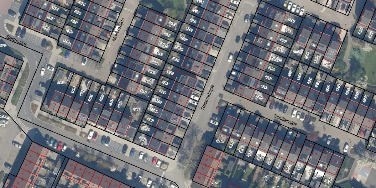 Gebruik de zoekbalk of klik op een perceel voor informatie over de adressen binnen dit perceel.