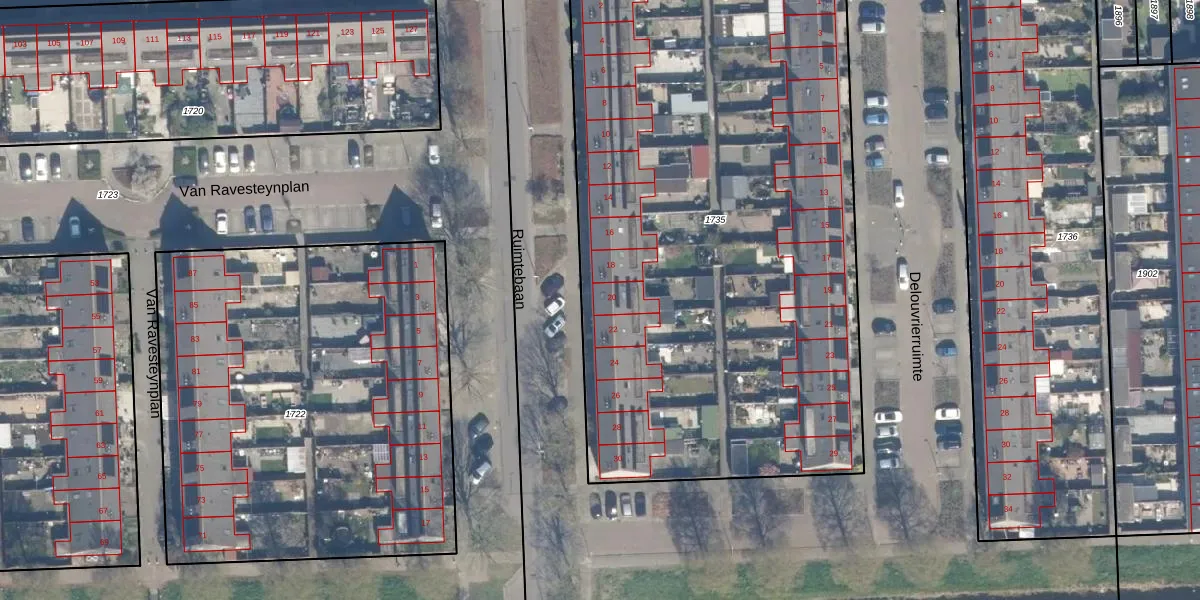 Het perceel waarop Ruimtebaan 20 staat heeft een oppervlakte van 3813 m². Dit is een zeer groot perceel. De perceeloppervlakte wordt geregistreerd door het Kadaster. Gedetailleerde informatie over de maten van dit perceel kunt u vinden in het rapport Kadastrale kaart met maatvoering van Ruimtebaan 20.