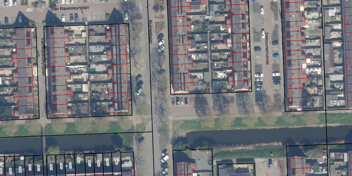 Het perceel waarop Ruimtebaan 30 staat heeft een oppervlakte van 3813 m². Dit is een zeer groot perceel. De perceeloppervlakte wordt geregistreerd door het Kadaster. Gedetailleerde informatie over de maten van dit perceel kunt u vinden in het rapport Kadastrale kaart met maatvoering van Ruimtebaan 30.