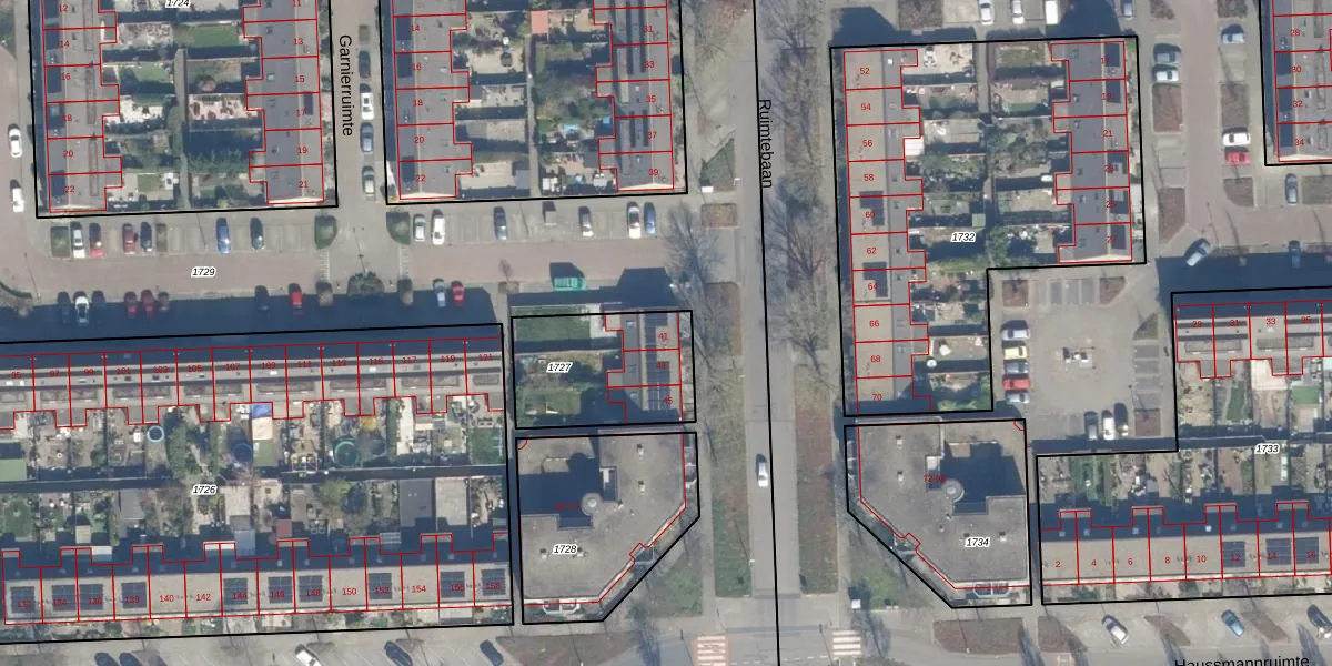 Het perceel waarop Ruimtebaan 41 staat heeft een oppervlakte van 489 m². Dit is een groot perceel. De perceeloppervlakte wordt geregistreerd door het Kadaster. Gedetailleerde informatie over de maten van dit perceel kunt u vinden in het rapport Kadastrale kaart met maatvoering van Ruimtebaan 41.
