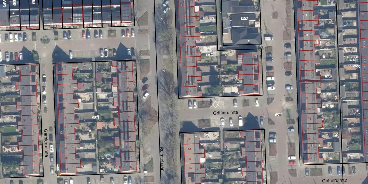 Het perceel waarop Ruimtebaan 50 staat heeft een oppervlakte van 2008 m². Dit is een zeer groot perceel. De perceeloppervlakte wordt geregistreerd door het Kadaster. Gedetailleerde informatie over de maten van dit perceel kunt u vinden in het rapport Kadastrale kaart met maatvoering van Ruimtebaan 50.