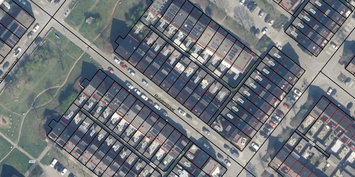 Het perceel waarop Ruivenstraat 14 staat heeft een oppervlakte van 131 m². Dit is een middelgroot perceel. De perceeloppervlakte wordt geregistreerd door het Kadaster. Gedetailleerde informatie over de maten van dit perceel kunt u vinden in het rapport Kadastrale kaart met maatvoering van Ruivenstraat 14.