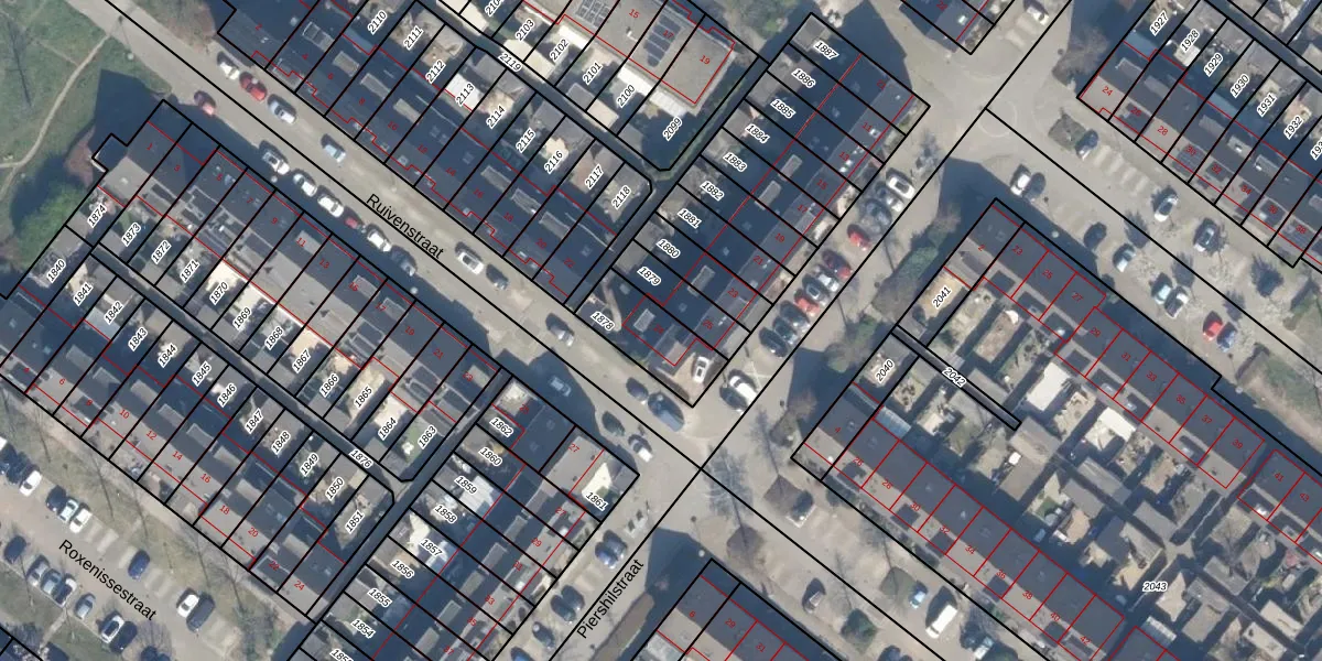 Het perceel waarop Ruivenstraat 24 staat heeft een oppervlakte van 205 m². Dit is een middelgroot perceel. De perceeloppervlakte wordt geregistreerd door het Kadaster. Gedetailleerde informatie over de maten van dit perceel kunt u vinden in het rapport Kadastrale kaart met maatvoering van Ruivenstraat 24.