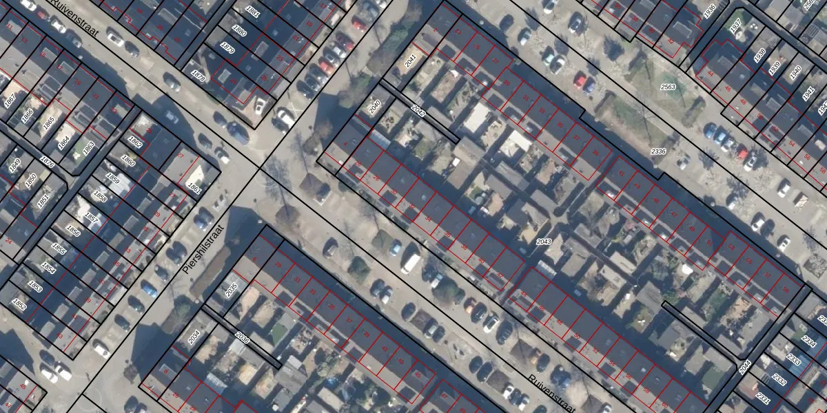 Het perceel waarop Ruivenstraat 32 staat heeft een oppervlakte van 5153 m². Dit is een zeer groot perceel. De perceeloppervlakte wordt geregistreerd door het Kadaster. Gedetailleerde informatie over de maten van dit perceel kunt u vinden in het rapport Kadastrale kaart met maatvoering van Ruivenstraat 32.