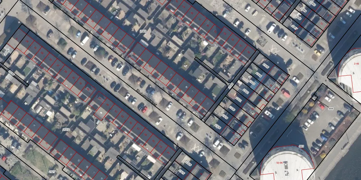 Het perceel waarop Ruivenstraat 56 staat heeft een oppervlakte van 5153 m². Dit is een zeer groot perceel. De perceeloppervlakte wordt geregistreerd door het Kadaster. Gedetailleerde informatie over de maten van dit perceel kunt u vinden in het rapport Kadastrale kaart met maatvoering van Ruivenstraat 56.