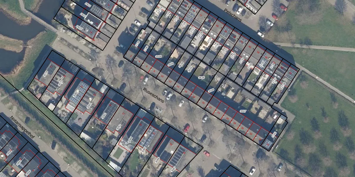 Gebruik de zoekbalk of klik op een perceel voor informatie over de adressen binnen dit perceel.