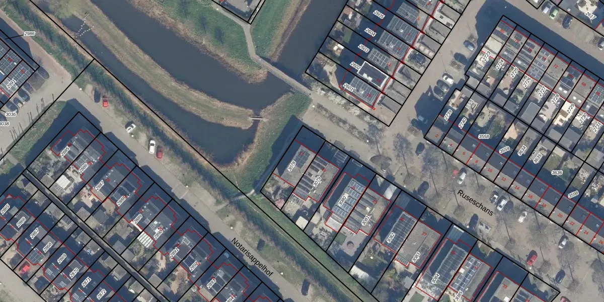 Het perceel waarop Ruseschans 17 staat heeft een oppervlakte van 242 m². Dit is een middelgroot perceel. De perceeloppervlakte wordt geregistreerd door het Kadaster. Gedetailleerde informatie over de maten van dit perceel kunt u vinden in het rapport Kadastrale kaart met maatvoering van Ruseschans 17.