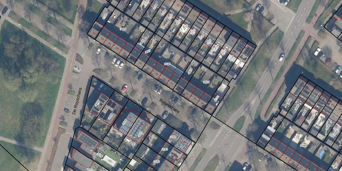 Het perceel waarop Ruseschans 72 staat heeft een oppervlakte van 481 m². Dit is een groot perceel. De perceeloppervlakte wordt geregistreerd door het Kadaster. Gedetailleerde informatie over de maten van dit perceel kunt u vinden in het rapport Kadastrale kaart met maatvoering van Ruseschans 72.