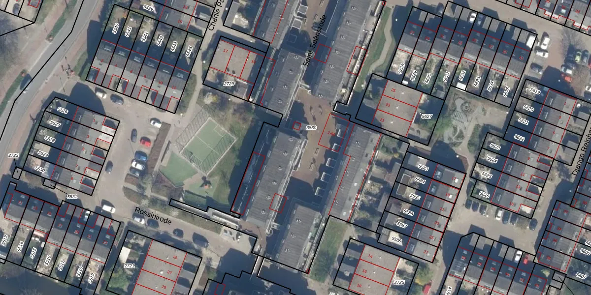 Saint-Saƫnsrode 1 is gelegen op kadastraal perceel ZTM00C3860. Deze kadastrale aanduiding is uniek en wordt gebruikt door het Kadaster om eigendomsrechten en andere zakelijke rechten vast te leggen. Het perceel maakt onderdeel uit van de kadastrale gemeente Zoetermeer.