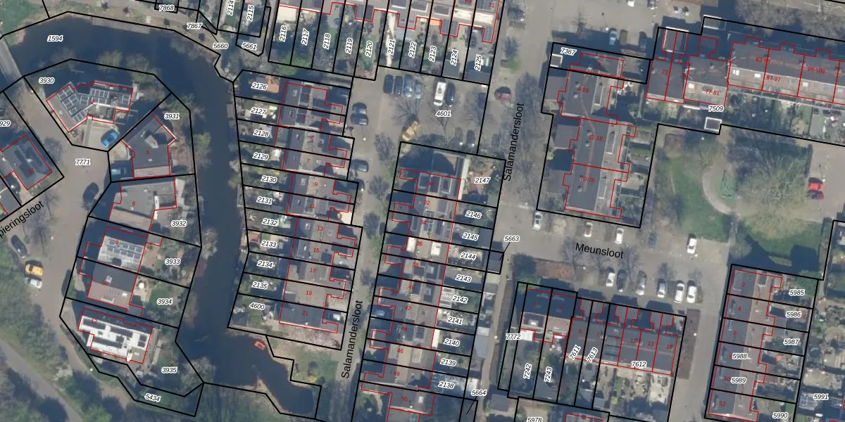 Gebruik de zoekbalk of klik op een perceel voor informatie over de adressen binnen dit perceel.