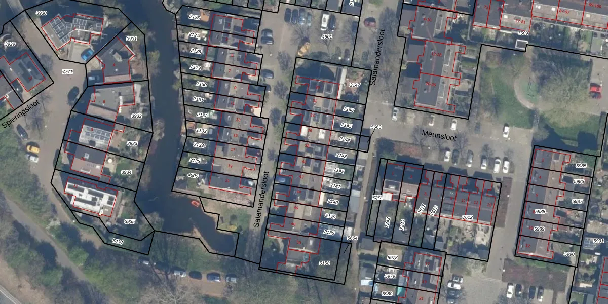 Het perceel waarop Salamandersloot 38 staat heeft een oppervlakte van 128 m². Dit is een middelgroot perceel. De perceeloppervlakte wordt geregistreerd door het Kadaster. Gedetailleerde informatie over de maten van dit perceel kunt u vinden in het rapport Kadastrale kaart met maatvoering van Salamandersloot 38.