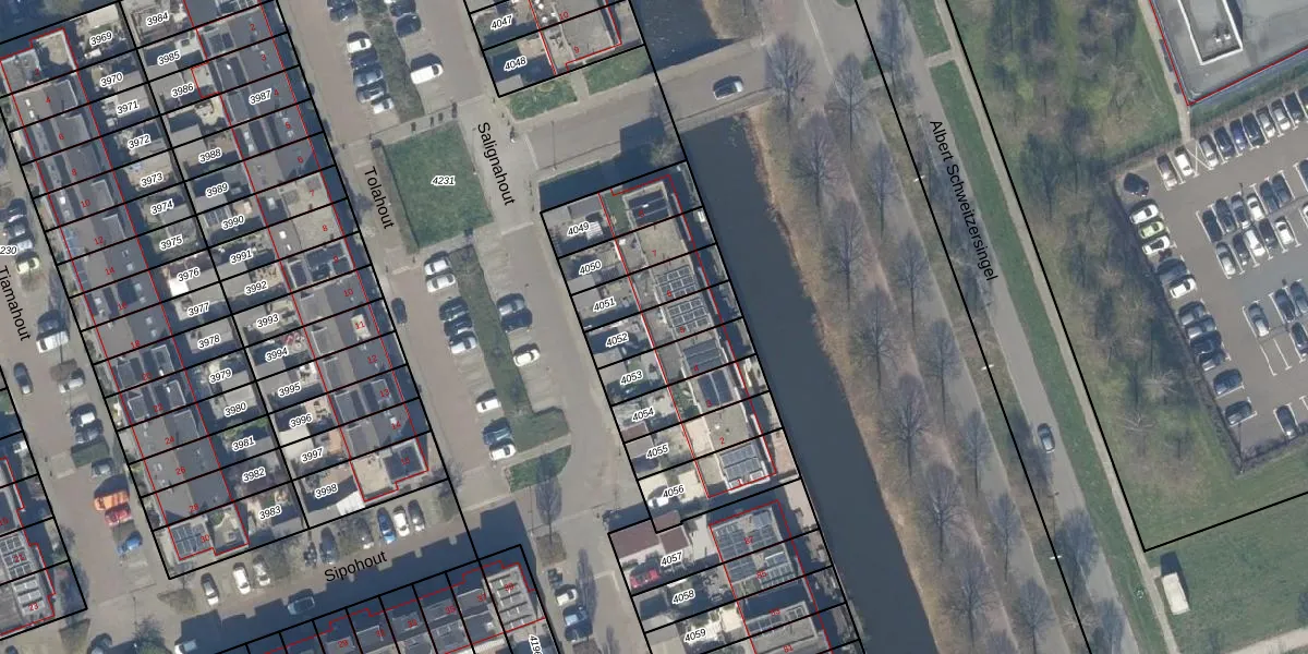 Gebruik de zoekbalk of klik op een perceel voor informatie over de adressen binnen dit perceel.