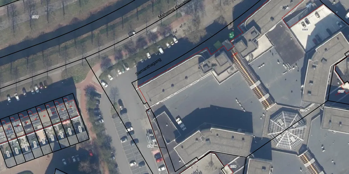 Het perceel waarop Samanthagang 54 staat heeft een oppervlakte van 7695 m². Dit is een zeer groot perceel. De perceeloppervlakte wordt geregistreerd door het Kadaster. Gedetailleerde informatie over de maten van dit perceel kunt u vinden in het rapport Kadastrale kaart met maatvoering van Samanthagang 54.