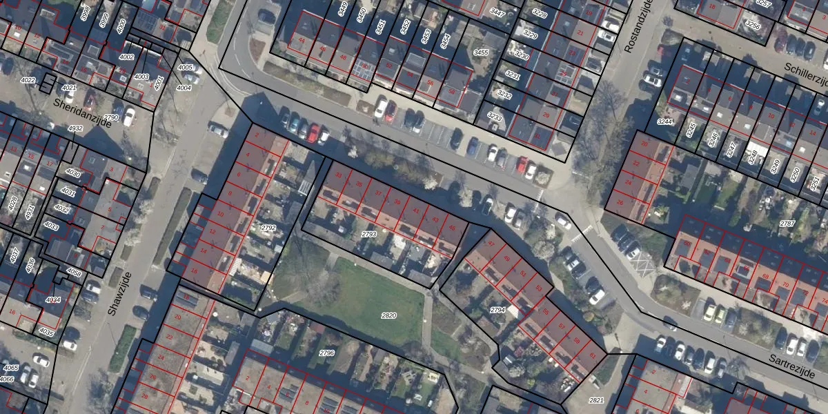 Het perceel waarop Sartrezijde 41 staat heeft een oppervlakte van 665 m². Dit is een groot perceel. De perceeloppervlakte wordt geregistreerd door het Kadaster. Gedetailleerde informatie over de maten van dit perceel kunt u vinden in het rapport Kadastrale kaart met maatvoering van Sartrezijde 41.