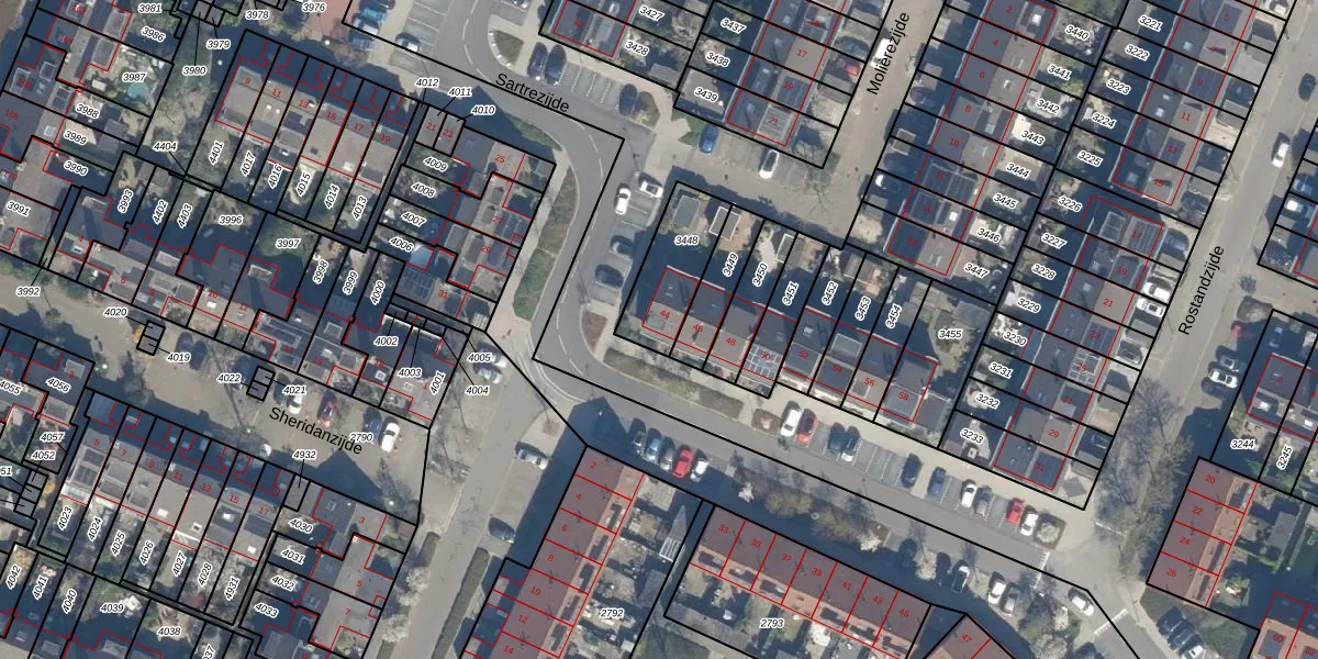 Het perceel waarop Sartrezijde 44 staat heeft een oppervlakte van 227 m². Dit is een middelgroot perceel. De perceeloppervlakte wordt geregistreerd door het Kadaster. Gedetailleerde informatie over de maten van dit perceel kunt u vinden in het rapport Kadastrale kaart met maatvoering van Sartrezijde 44.