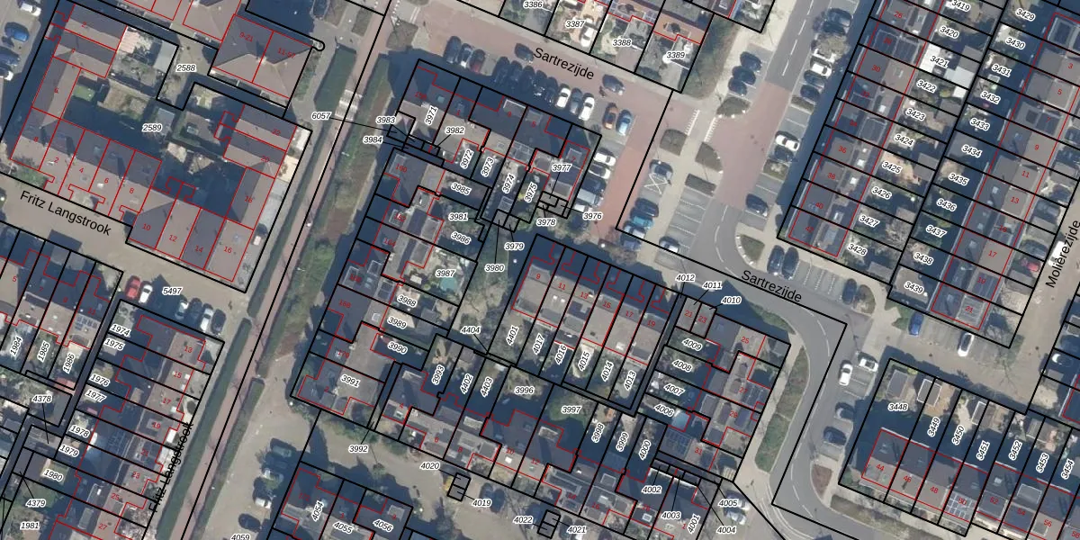 Sartrezijde 9 is gelegen op kadastraal perceel ZTM00C4401. Deze kadastrale aanduiding is uniek en wordt gebruikt door het Kadaster om eigendomsrechten en andere zakelijke rechten vast te leggen. Het perceel maakt onderdeel uit van de kadastrale gemeente Zoetermeer.
