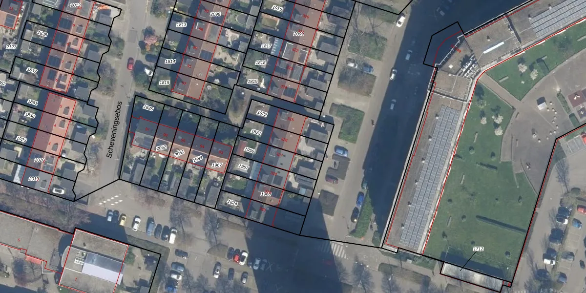 Gebruik de zoekbalk of klik op een perceel voor informatie over de adressen binnen dit perceel.
