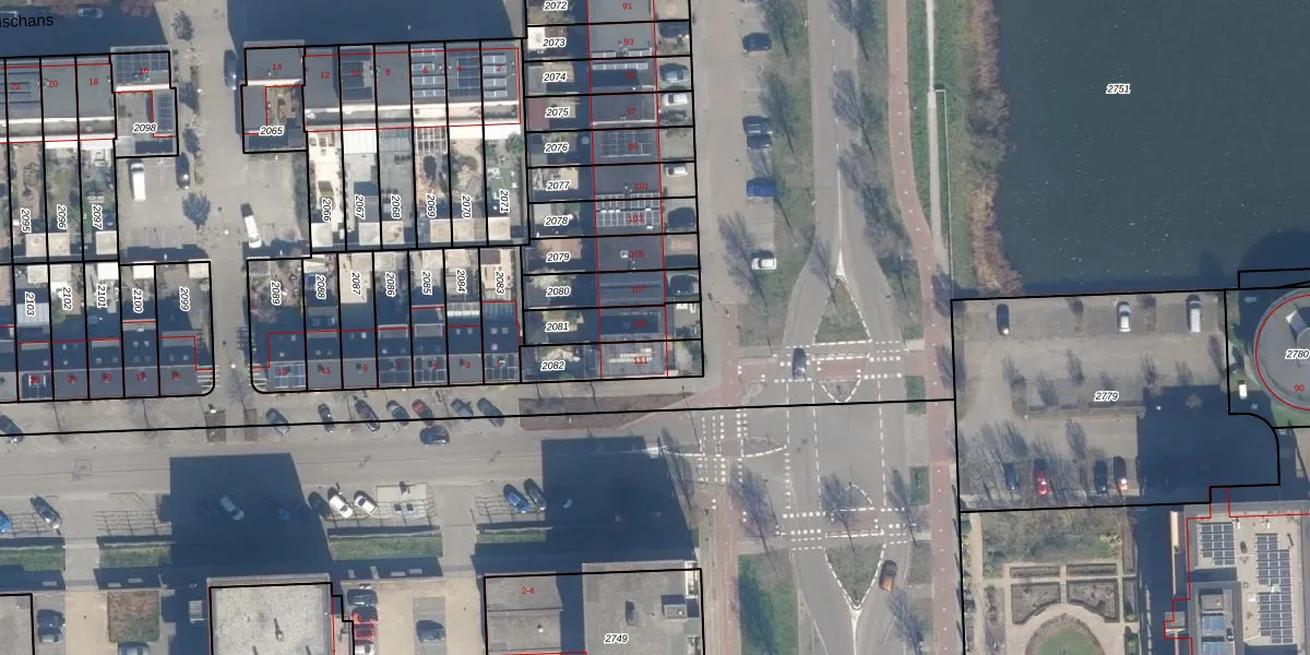 Gebruik de zoekbalk of klik op een perceel voor informatie over de adressen binnen dit perceel.