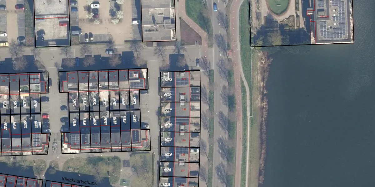 Gebruik de zoekbalk of klik op een perceel voor informatie over de adressen binnen dit perceel.