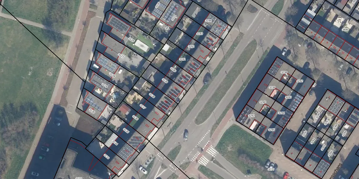 Gebruik de zoekbalk of klik op een perceel voor informatie over de adressen binnen dit perceel.