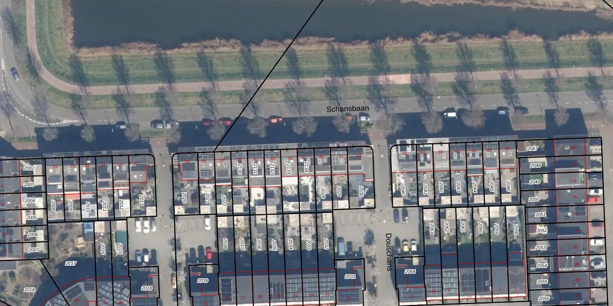 Gebruik de zoekbalk of klik op een perceel voor informatie over de adressen binnen dit perceel.