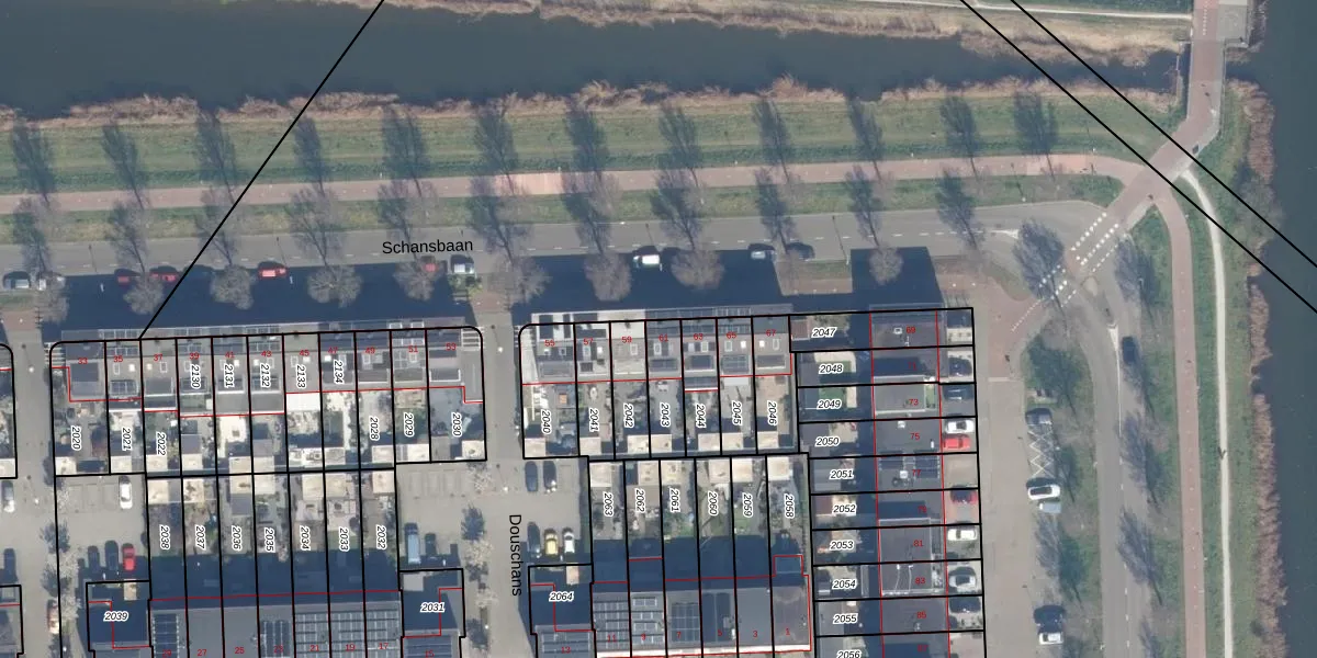 Gebruik de zoekbalk of klik op een perceel voor informatie over de adressen binnen dit perceel.