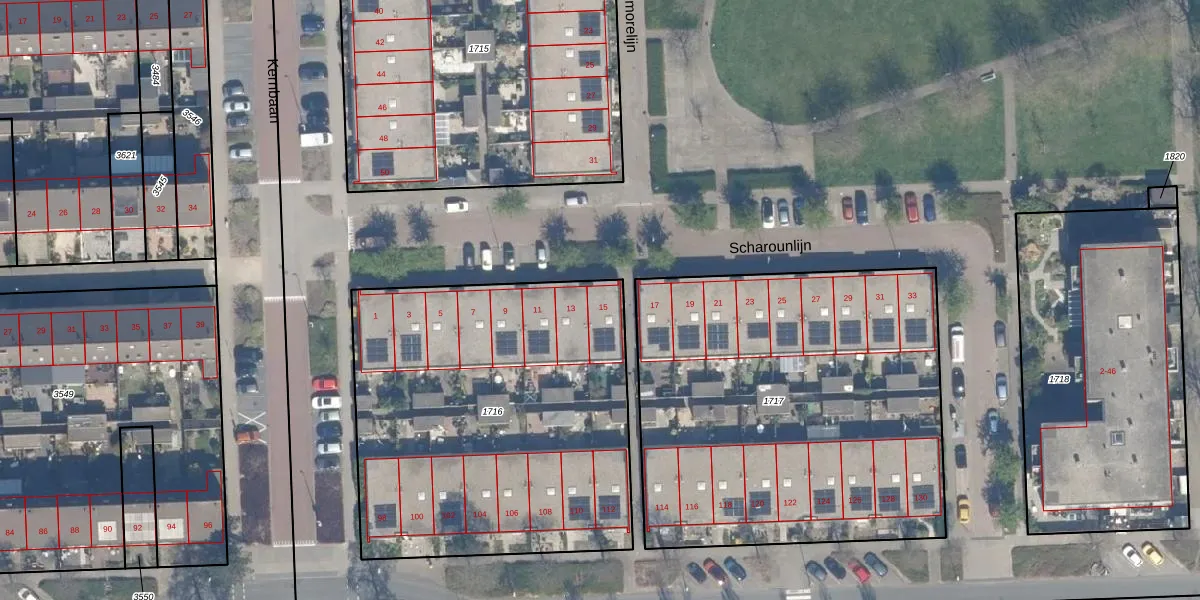 Het perceel waarop Scharounlijn 15 staat heeft een oppervlakte van 2039 m². Dit is een zeer groot perceel. De perceeloppervlakte wordt geregistreerd door het Kadaster. Gedetailleerde informatie over de maten van dit perceel kunt u vinden in het rapport Kadastrale kaart met maatvoering van Scharounlijn 15.