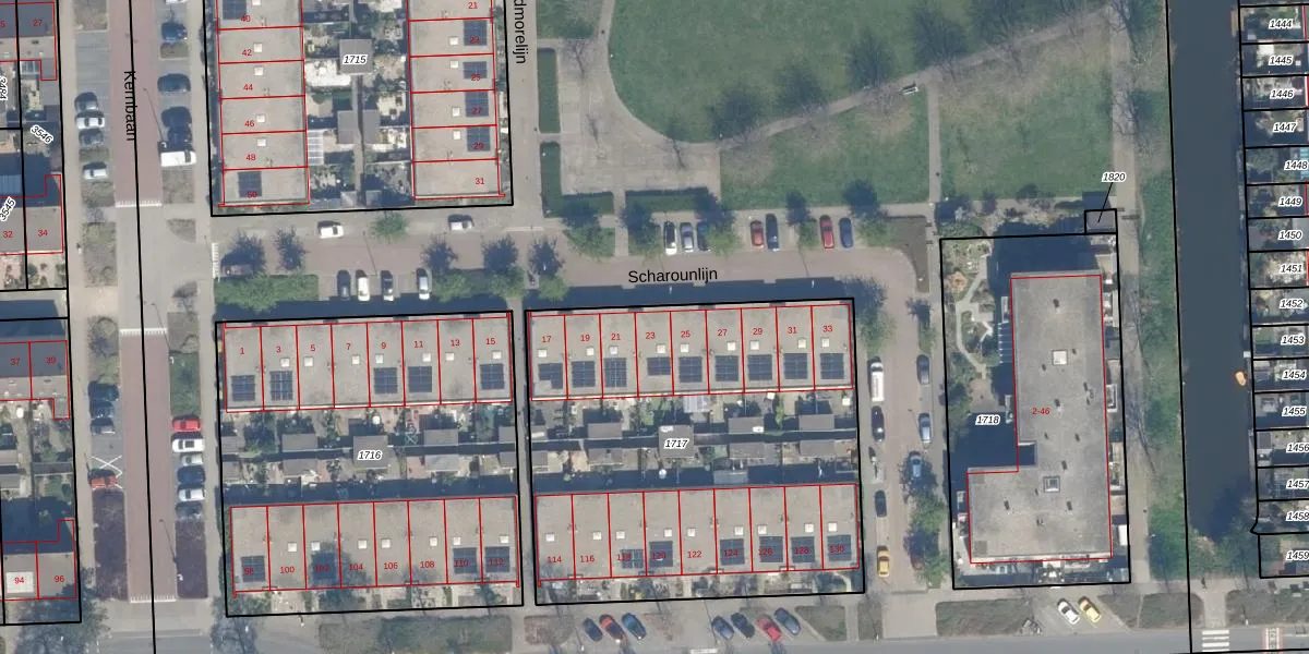 Het perceel waarop Scharounlijn 23 staat heeft een oppervlakte van 2259 m². Dit is een zeer groot perceel. De perceeloppervlakte wordt geregistreerd door het Kadaster. Gedetailleerde informatie over de maten van dit perceel kunt u vinden in het rapport Kadastrale kaart met maatvoering van Scharounlijn 23.