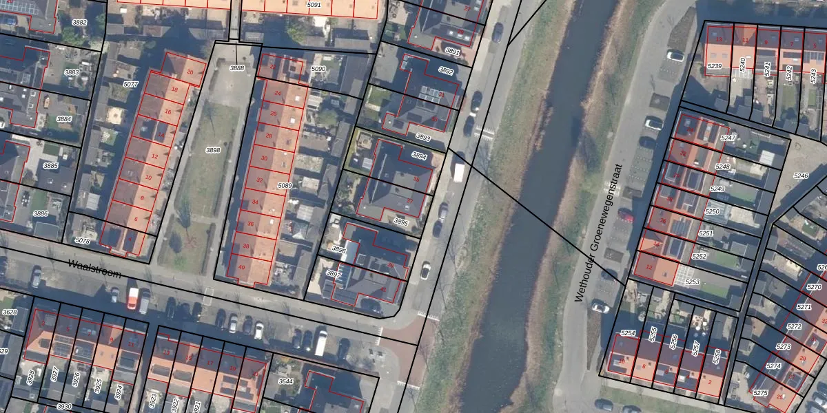 Gebruik de zoekbalk of klik op een perceel voor informatie over de adressen binnen dit perceel.