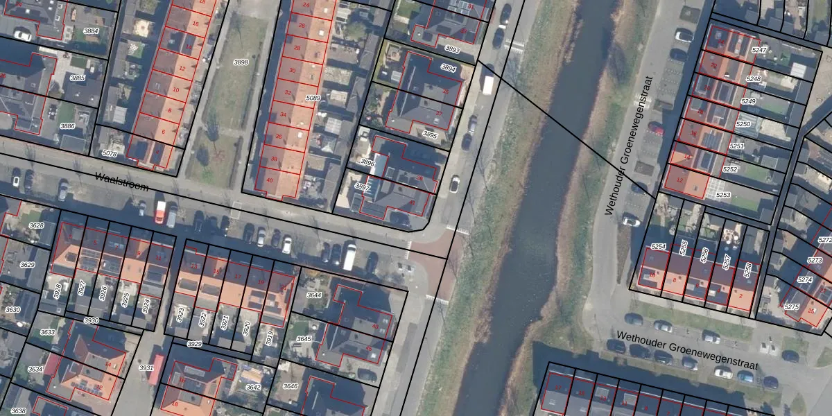 Gebruik de zoekbalk of klik op een perceel voor informatie over de adressen binnen dit perceel.