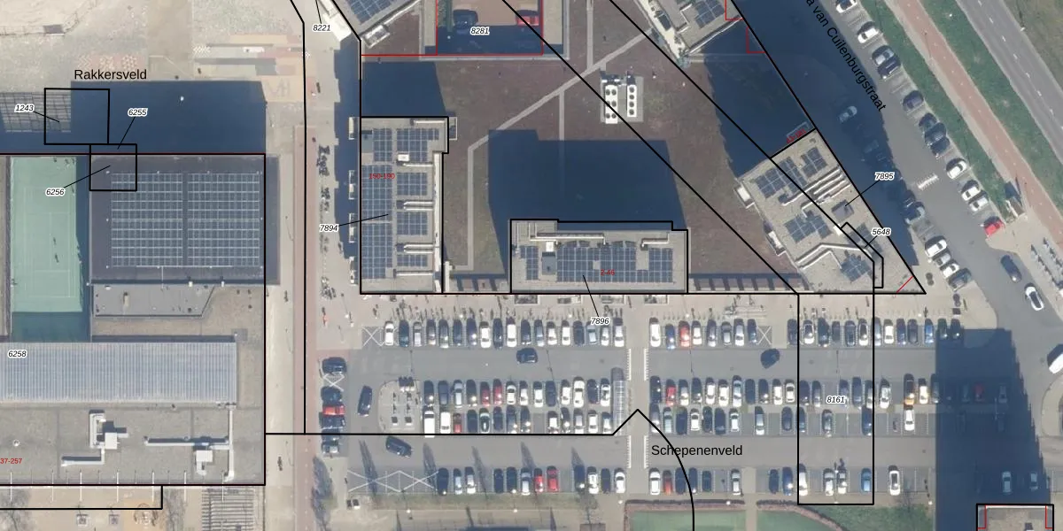 Het perceel waarop Schepenenveld 42 staat heeft een oppervlakte van 449 m². Dit is een groot perceel. De perceeloppervlakte wordt geregistreerd door het Kadaster. Gedetailleerde informatie over de maten van dit perceel kunt u vinden in het rapport Kadastrale kaart met maatvoering van Schepenenveld 42.