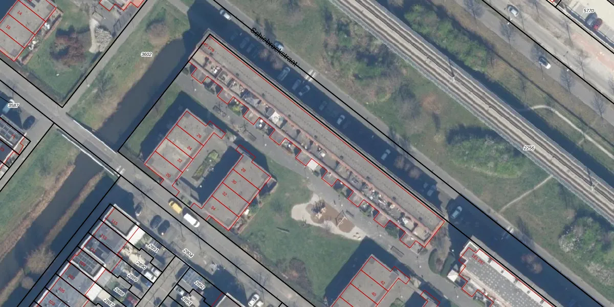 Het perceel waarop Schiebroekstraat 165-A staat heeft een oppervlakte van 1,2 ha. Dit is een zeer groot perceel. De perceeloppervlakte wordt geregistreerd door het Kadaster. Gedetailleerde informatie over de maten van dit perceel kunt u vinden in het rapport Kadastrale kaart met maatvoering van Schiebroekstraat 165-A.