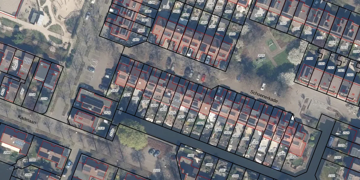 Het perceel waarop Schoenerkade 13 staat heeft een oppervlakte van 159 m². Dit is een middelgroot perceel. De perceeloppervlakte wordt geregistreerd door het Kadaster. Gedetailleerde informatie over de maten van dit perceel kunt u vinden in het rapport Kadastrale kaart met maatvoering van Schoenerkade 13.
