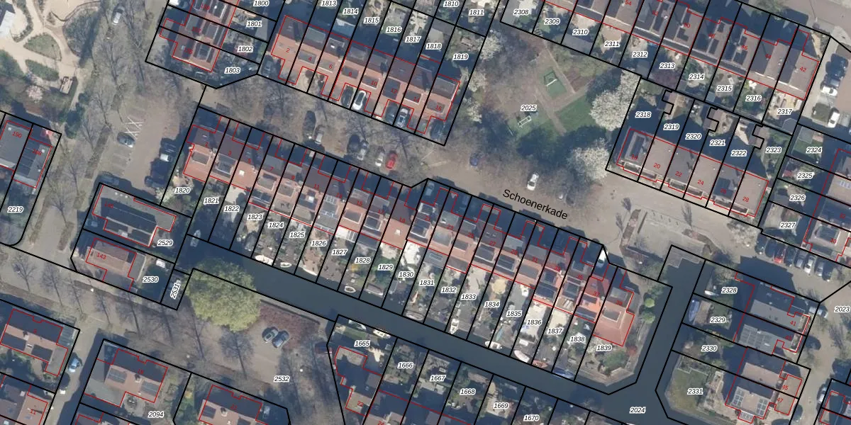 Het perceel waarop Schoenerkade 21 staat heeft een oppervlakte van 172 m². Dit is een middelgroot perceel. De perceeloppervlakte wordt geregistreerd door het Kadaster. Gedetailleerde informatie over de maten van dit perceel kunt u vinden in het rapport Kadastrale kaart met maatvoering van Schoenerkade 21.