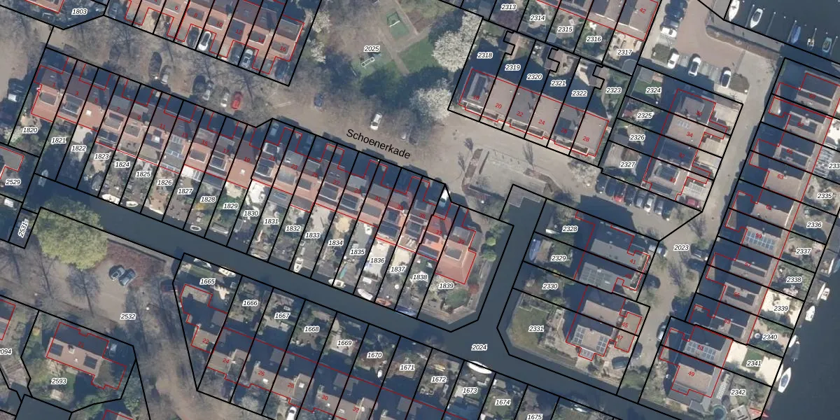 Het perceel waarop Schoenerkade 35 staat heeft een oppervlakte van 172 m². Dit is een middelgroot perceel. De perceeloppervlakte wordt geregistreerd door het Kadaster. Gedetailleerde informatie over de maten van dit perceel kunt u vinden in het rapport Kadastrale kaart met maatvoering van Schoenerkade 35.