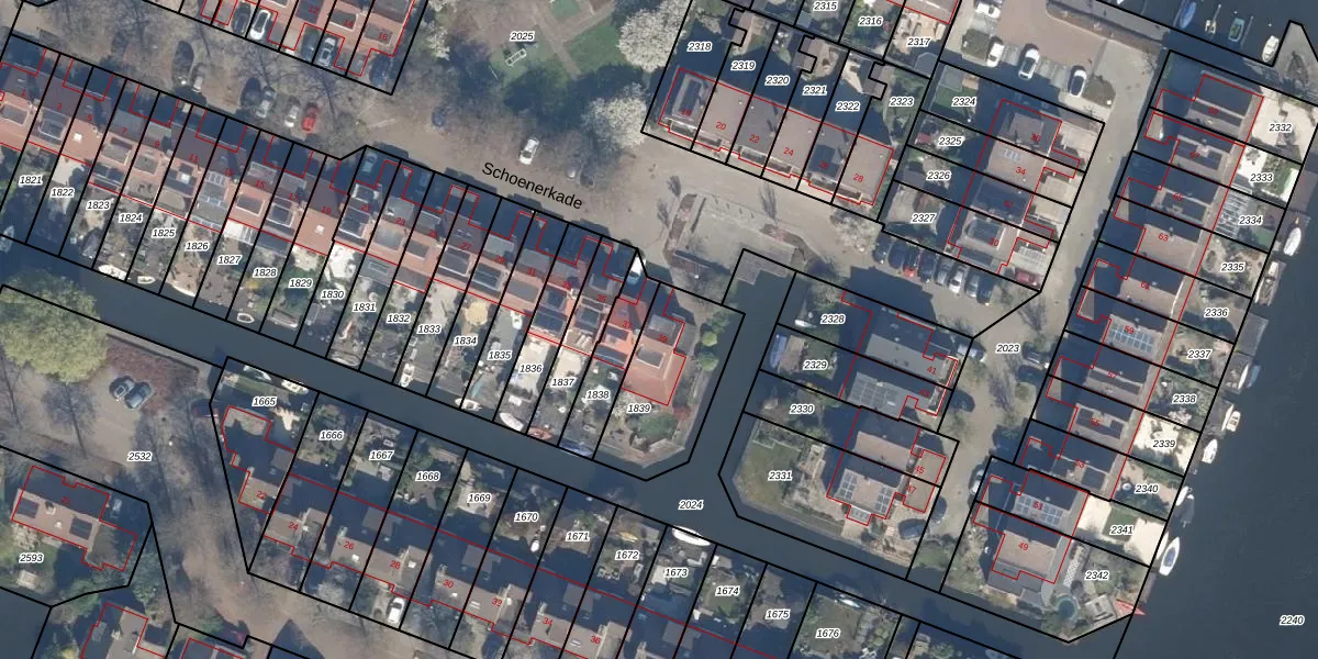 Het perceel waarop Schoenerkade 39 staat heeft een oppervlakte van 385 m². Dit is een groot perceel. De perceeloppervlakte wordt geregistreerd door het Kadaster. Gedetailleerde informatie over de maten van dit perceel kunt u vinden in het rapport Kadastrale kaart met maatvoering van Schoenerkade 39.