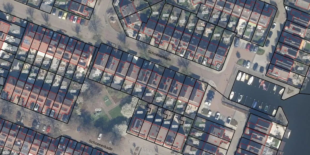 Gebruik de zoekbalk of klik op een perceel voor informatie over de adressen binnen dit perceel.