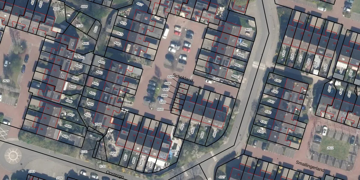 Het perceel waarop Schokland 6 staat heeft een oppervlakte van 16 m². Dit is een klein perceel. De perceeloppervlakte wordt geregistreerd door het Kadaster. Gedetailleerde informatie over de maten van dit perceel kunt u vinden in het rapport Kadastrale kaart met maatvoering van Schokland 6.