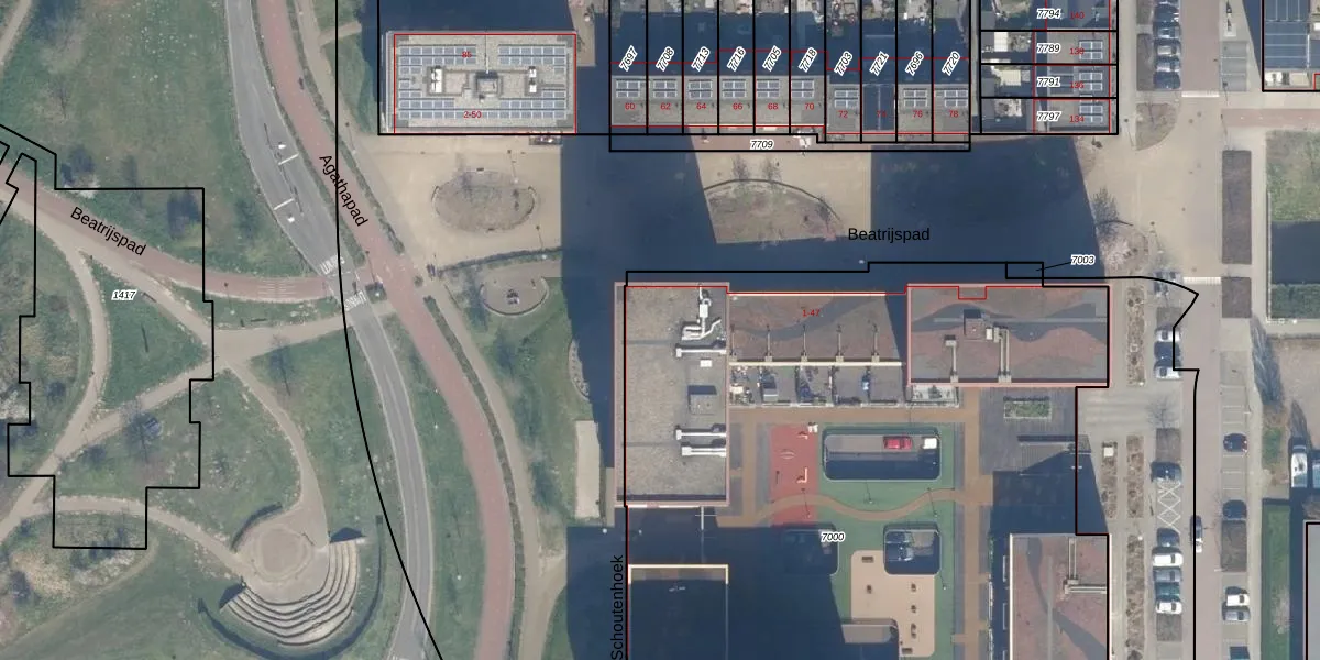 Het perceel waarop Schoutenhoek 21 staat heeft een oppervlakte van 5865 m². Dit is een zeer groot perceel. De perceeloppervlakte wordt geregistreerd door het Kadaster. Gedetailleerde informatie over de maten van dit perceel kunt u vinden in het rapport Kadastrale kaart met maatvoering van Schoutenhoek 21.