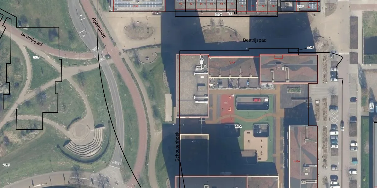 Het perceel waarop Schoutenhoek 27 staat heeft een oppervlakte van 5865 m². Dit is een zeer groot perceel. De perceeloppervlakte wordt geregistreerd door het Kadaster. Gedetailleerde informatie over de maten van dit perceel kunt u vinden in het rapport Kadastrale kaart met maatvoering van Schoutenhoek 27.