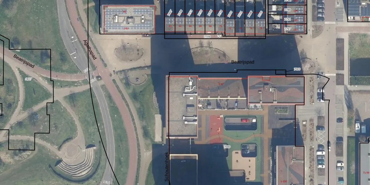 Het perceel waarop Schoutenhoek 35 staat heeft een oppervlakte van 5865 m². Dit is een zeer groot perceel. De perceeloppervlakte wordt geregistreerd door het Kadaster. Gedetailleerde informatie over de maten van dit perceel kunt u vinden in het rapport Kadastrale kaart met maatvoering van Schoutenhoek 35.