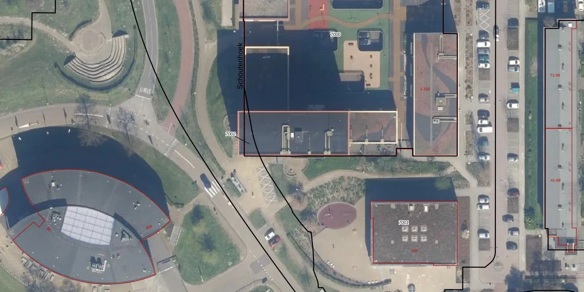 Het perceel waarop Schoutenhoek 49 staat heeft een oppervlakte van 5865 m². Dit is een zeer groot perceel. De perceeloppervlakte wordt geregistreerd door het Kadaster. Gedetailleerde informatie over de maten van dit perceel kunt u vinden in het rapport Kadastrale kaart met maatvoering van Schoutenhoek 49.