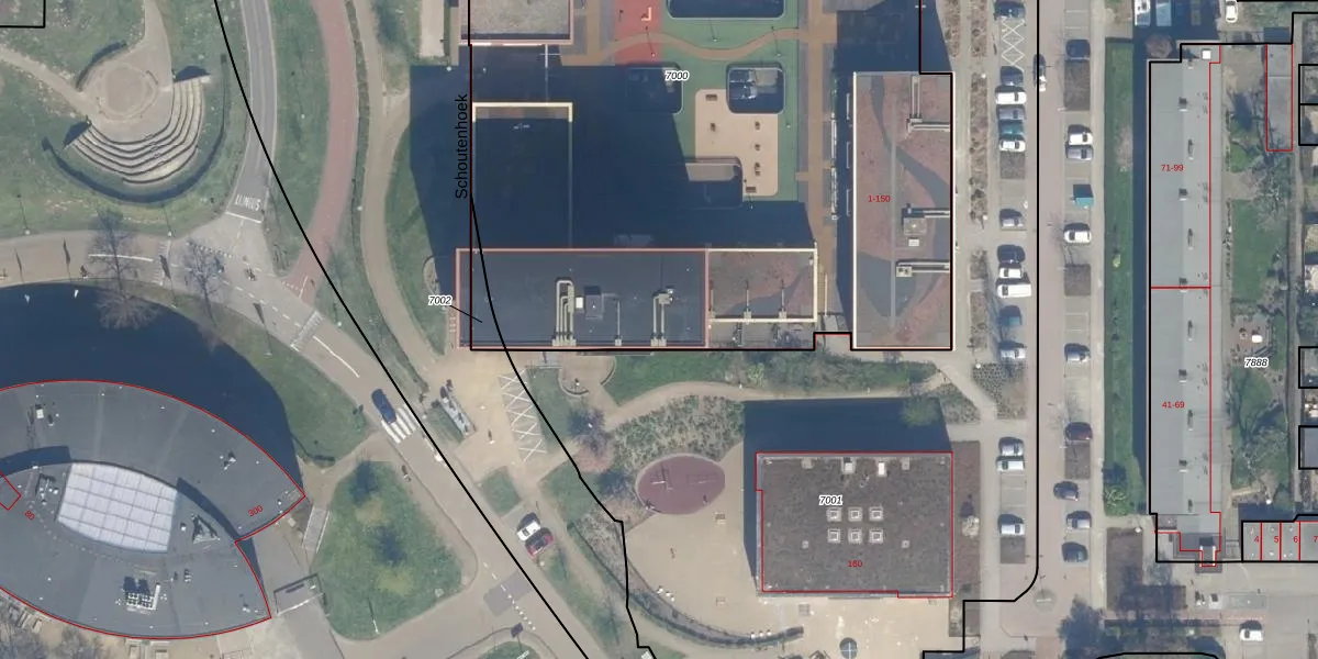Het perceel waarop Schoutenhoek 53 staat heeft een oppervlakte van 5865 m². Dit is een zeer groot perceel. De perceeloppervlakte wordt geregistreerd door het Kadaster. Gedetailleerde informatie over de maten van dit perceel kunt u vinden in het rapport Kadastrale kaart met maatvoering van Schoutenhoek 53.