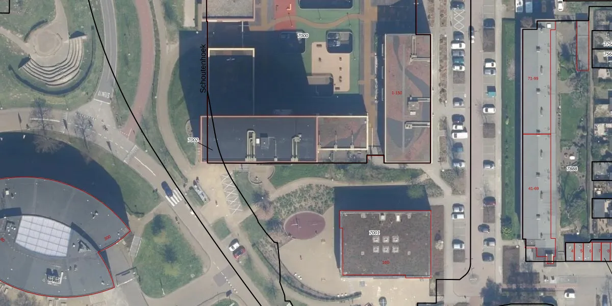 Het perceel waarop Schoutenhoek 54 staat heeft een oppervlakte van 5865 m². Dit is een zeer groot perceel. De perceeloppervlakte wordt geregistreerd door het Kadaster. Gedetailleerde informatie over de maten van dit perceel kunt u vinden in het rapport Kadastrale kaart met maatvoering van Schoutenhoek 54.