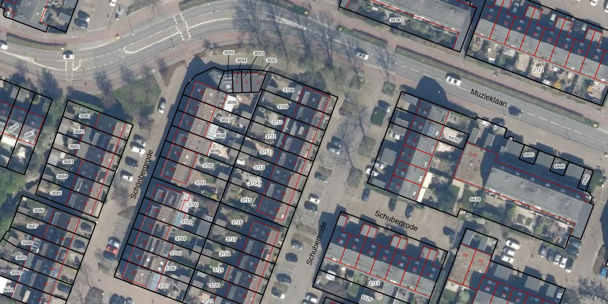 Gebruik de zoekbalk of klik op een perceel voor informatie over de adressen binnen dit perceel.