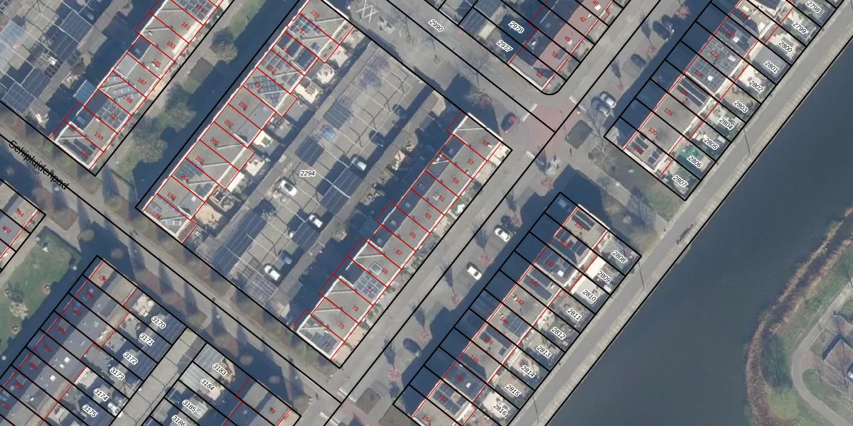 Het perceel waarop Schuddebeursstraat 63 staat heeft een oppervlakte van 3982 m². Dit is een zeer groot perceel. De perceeloppervlakte wordt geregistreerd door het Kadaster. Gedetailleerde informatie over de maten van dit perceel kunt u vinden in het rapport Kadastrale kaart met maatvoering van Schuddebeursstraat 63.