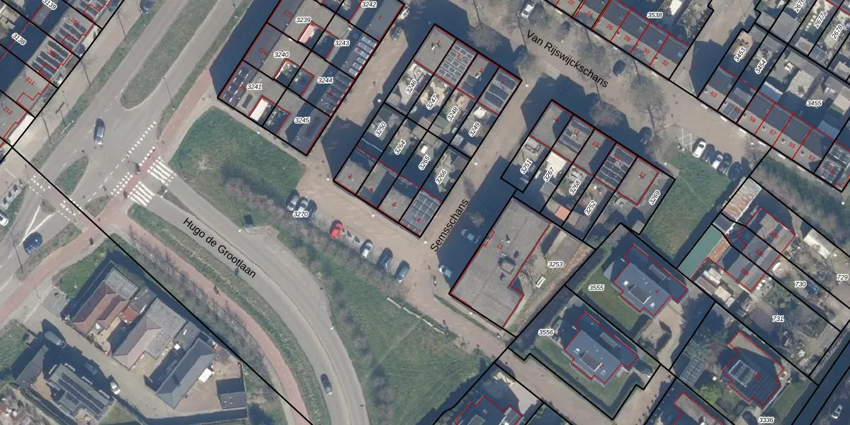 Gebruik de zoekbalk of klik op een perceel voor informatie over de adressen binnen dit perceel.